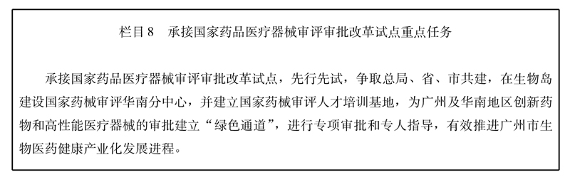合理設置食品藥品審評體系,強化審評機構人員及資源配置,拓展審評技術服務能力,建立綜合、高效的技術審評支撐體系。承接國家藥械審評審批改革試點,總局、省、市共建國家藥械審評華南分中心,探索利用社會資源,引入第三方機構食品藥品安全監督檢查工作機制。