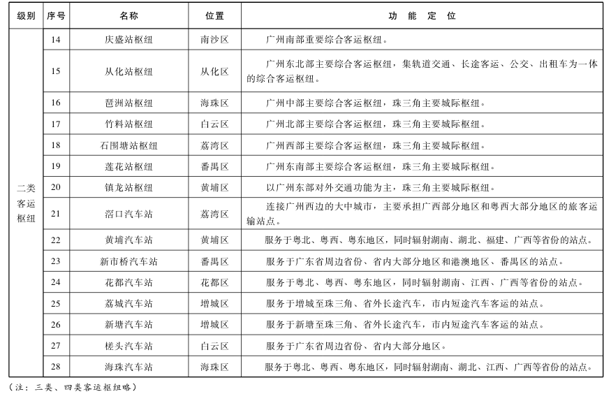 雙芯:航空芯——以廣州白云國際機(jī)場(chǎng)為核心,構(gòu)建航空樞紐網(wǎng)絡(luò),連接廣州北站、廣州機(jī)場(chǎng)站、知識(shí)城站,打造世界級(jí)空港和空鐵聯(lián)運(yùn)樞紐;主城芯——在人口高度集聚的主城區(qū),依托廣州中心火車站(廣州站—廣州東站)、廣州南站、白云站等,建設(shè)廣州樞紐中心,合理布局汽車客運(yùn)站和水巴碼頭,高密度布局旅客換乘樞紐,優(yōu)化提升主城區(qū)服務(wù)能級(jí)。