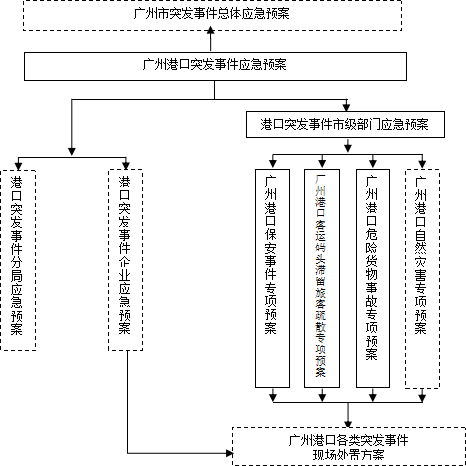 廣州港轄區內各港口企業應根據上述預案及企業實際情況制訂各自綜合應急預案、專項應急預案和現場處置方案。