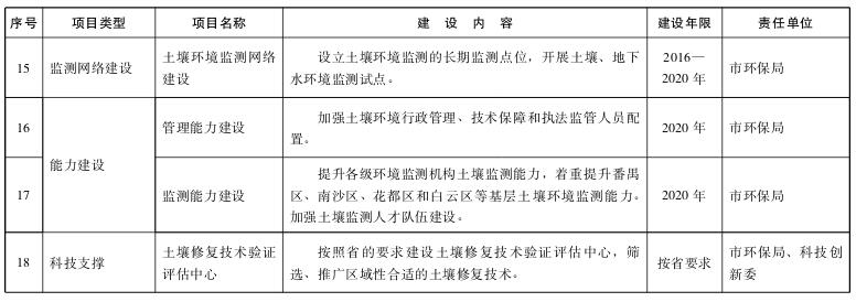 (三十)加強(qiáng)能力建設(shè)。加強(qiáng)土壤環(huán)境行政管理、技術(shù)保障和執(zhí)法監(jiān)管隊(duì)伍建設(shè),對(duì)各級(jí)相關(guān)人員每3年開(kāi)展1輪土壤污染防治專(zhuān)業(yè)技術(shù)培訓(xùn),為執(zhí)法監(jiān)管人員配備土壤污染快速檢測(cè)等必要的執(zhí)法裝備(市環(huán)保局牽頭,市國(guó)土規(guī)劃委、農(nóng)業(yè)局、林業(yè)和園林局、編辦,各相關(guān)區(qū)政府參與)。番禺區(qū)、南沙區(qū)、花都區(qū)和白云區(qū)等要加強(qiáng)監(jiān)測(cè)裝備的配置(各相關(guān)區(qū)政府負(fù)責(zé))。