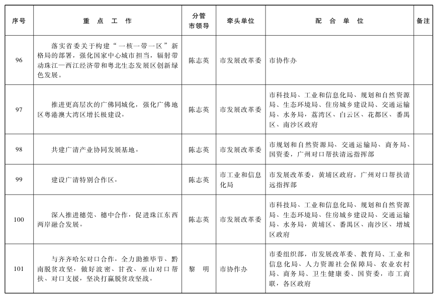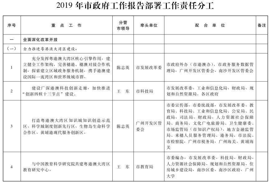 廣州市人民政府關(guān)于印發(fā)2019年市政府工作報告部署工作責(zé)任分工的通知