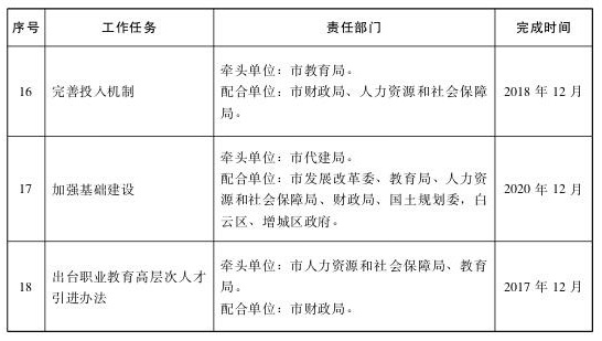(二十五)加強基礎建設。積極改善職業(yè)院校辦學條件,加快推進廣州職業(yè)技術院校遷建工程。對原有校區(qū)實施整合調整,支持不搬遷院校采取就地改、擴、建等方式改善辦學條件。“關、停、并、轉”辦學條件嚴重不達標的學校,力爭2020年職業(yè)院校全部達到國家規(guī)定的辦學標準。加快廣州鐘落潭高校園區(qū)改善配套條件,優(yōu)化基礎設施。加強校企合作示范基地建設,依托職業(yè)院校、合作企業(yè)建設開放、共享的技能實訓基地。