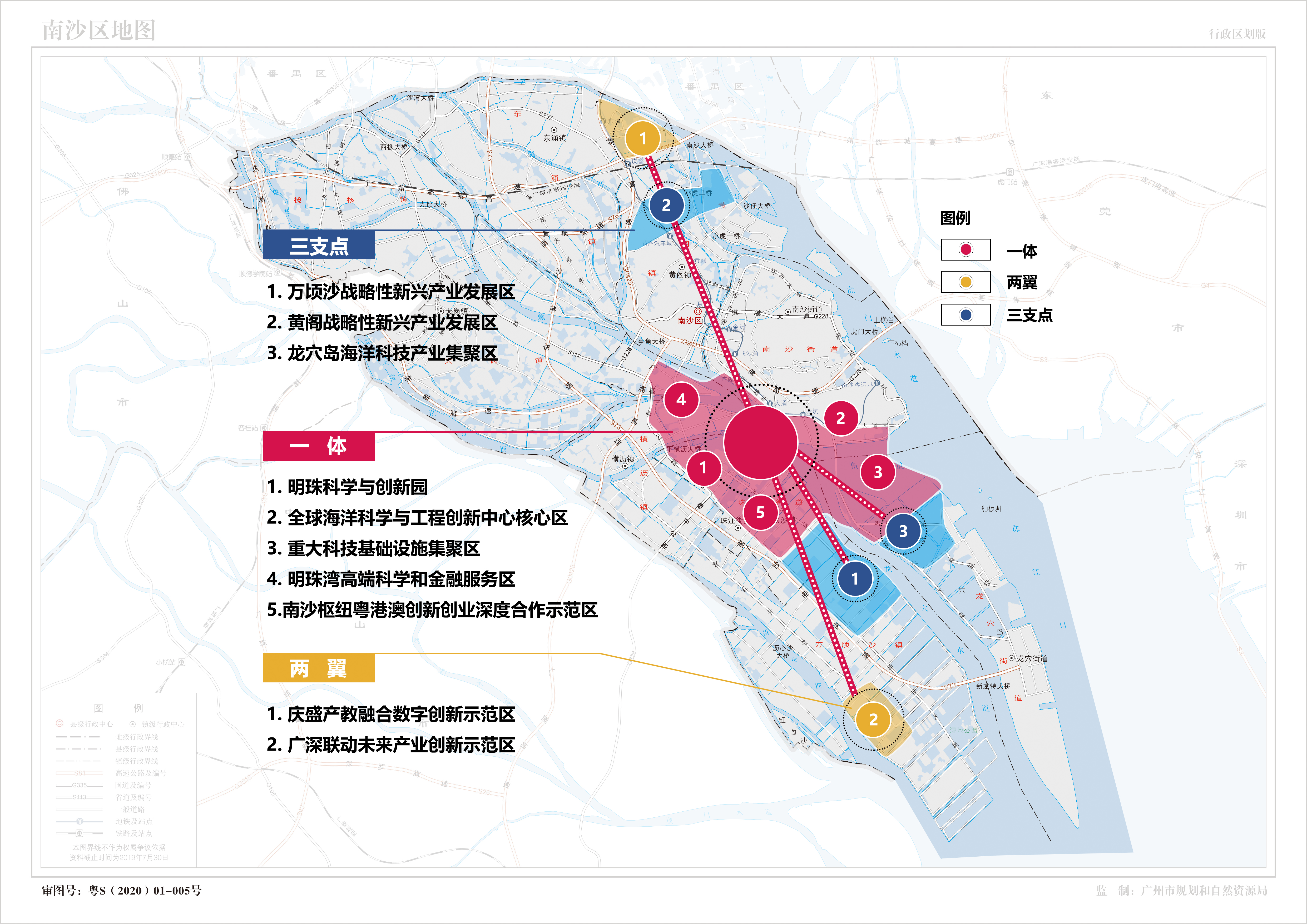 南沙科學城“一體兩翼三支點”空間布局示意圖