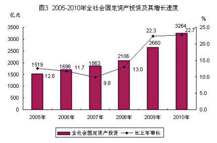 固定資產投資:全社會固定資產投資快速增長。全年完成全社會固定資產投資3263.57億元(包括省屬跨市項目),增長22.7%;其中,房地產開發投資983.66億元,增長20.3%。新增固定資產2370.25億元,增長50.7%。市屬單位(含區、縣級市及其他)完成投資2616.30億元,占80.17%;中央、省屬單位完成投資647.27億元,占19.83%。