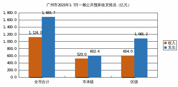 2021年1-7月,全市一般公共預算收入1,124億元,同比增長14.6%。其中:市本級收入520億元,同比增長10.4%;區級收入604億元,同比增長18.5%。全市一般公共預算支出1,683.7億元,同比增長11.5%。其中:市本級支出602.4億元,同比增長5.9%;區級支出1,081.2億元,同比增長14.9%。