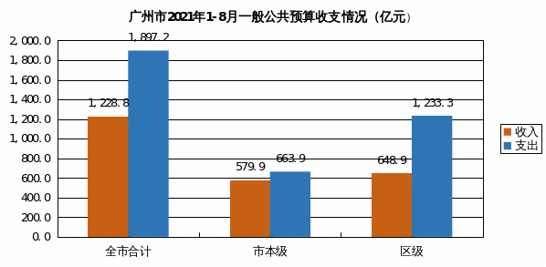 2021年1-8月,全市一般公共預算收入1,228.8億元,同比增長12.2%。其中:市本級收入579.9億元,同比增長9.2%;區級收入648.9億元,同比增長15%。全市一般公共預算支出1,897.2億元,同比增長6.3%。其中:市本級支出663.9億元,同比下降0.6%;區級支出1,233.3億元,同比增長10.4%。