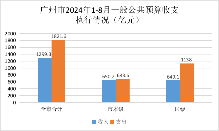 1-8月,全市一般公共預(yù)算收入1,299.3億元,同比增長1.1%。其中:市本級一般公共預(yù)算收入650.2億元,同比增長2.9%;區(qū)級一般公共預(yù)算收入649.1億元,同比下降0.6%。