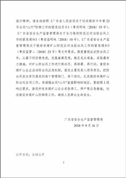 轉發廣東省安全生產監督管理局關于進一步重申做好非煤礦山防范應對“山竹”超強臺風工作的緊急通知