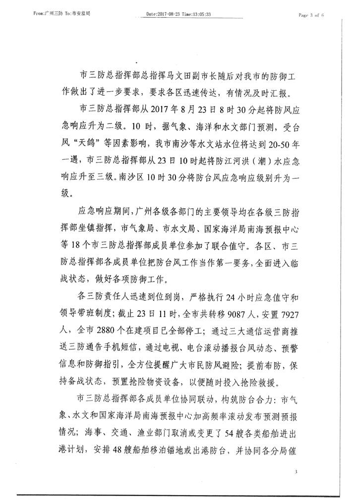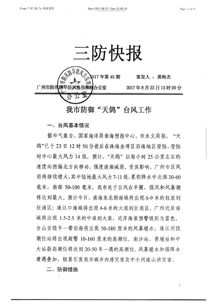 轉發我市防御“天鴿”臺風工作