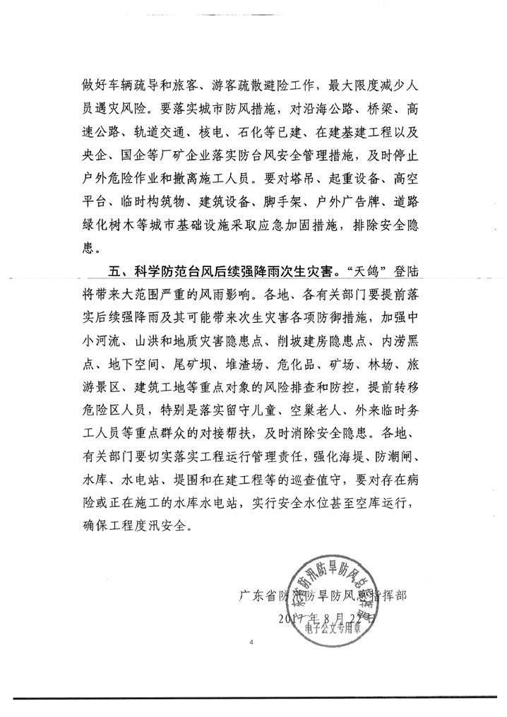 轉發廣東省防汛防旱防風總指揮部關于貫徹落實省委省政府主要領導重要批示指示精神,切實做好臺風“天鴿”防御工作的緊急通知