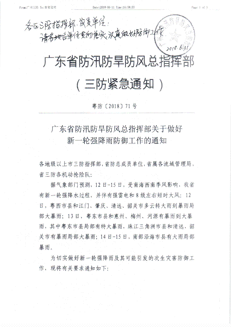 轉發廣東省防汛防旱防風總指揮部關于做好新一輪強降雨防御工作的通知