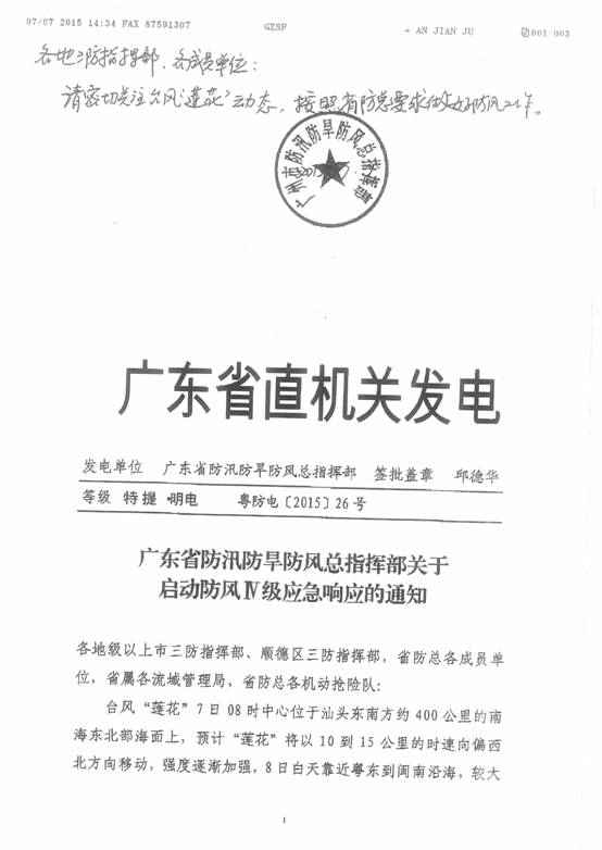 轉發廣東省防汛防旱防風總指揮部關于啟動防風Ⅳ級應急響應的通知