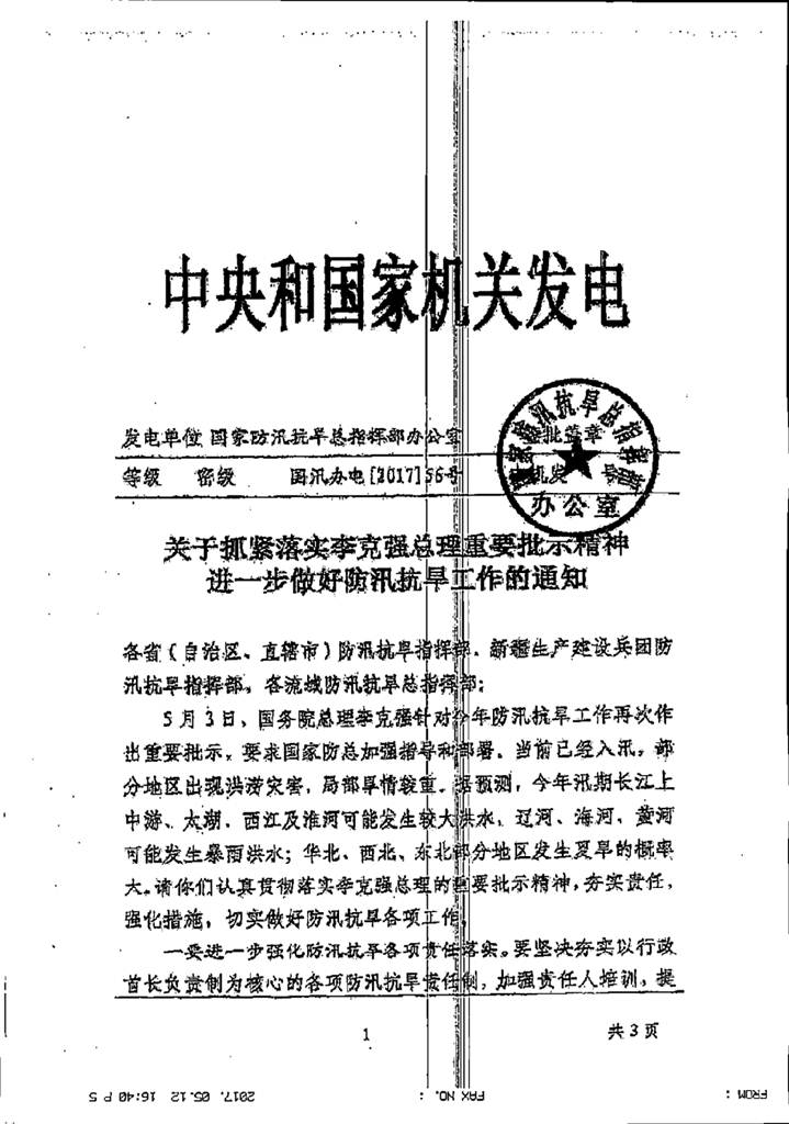轉(zhuǎn)發(fā)國家防辦關(guān)于抓緊落實李克強(qiáng)總理重要批示精神 進(jìn)一步做好防汛抗旱工作的通知