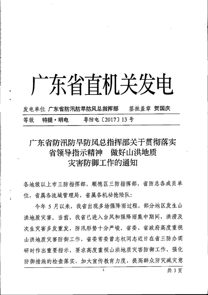 轉(zhuǎn)發(fā)省防總關(guān)于貫徹落實(shí)省領(lǐng)導(dǎo)指示精神 做好山洪地質(zhì)災(zāi)害防御工作的通知