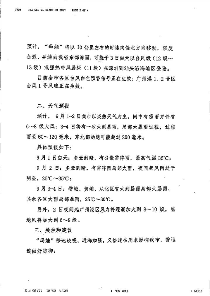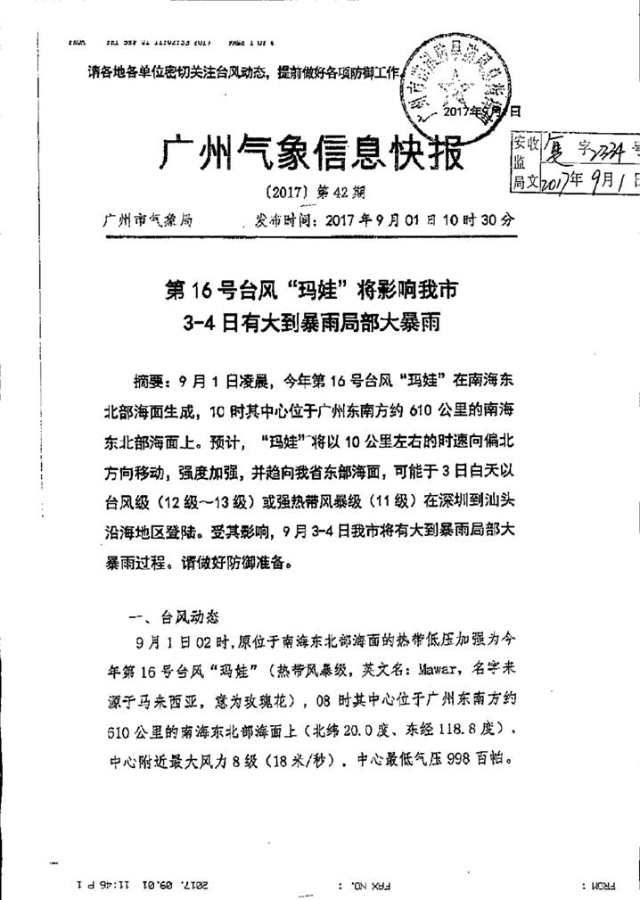 轉發第16號臺風“瑪娃”將影響我市,3-4日有大到暴雨局部大暴雨,請各單位做好防御工作