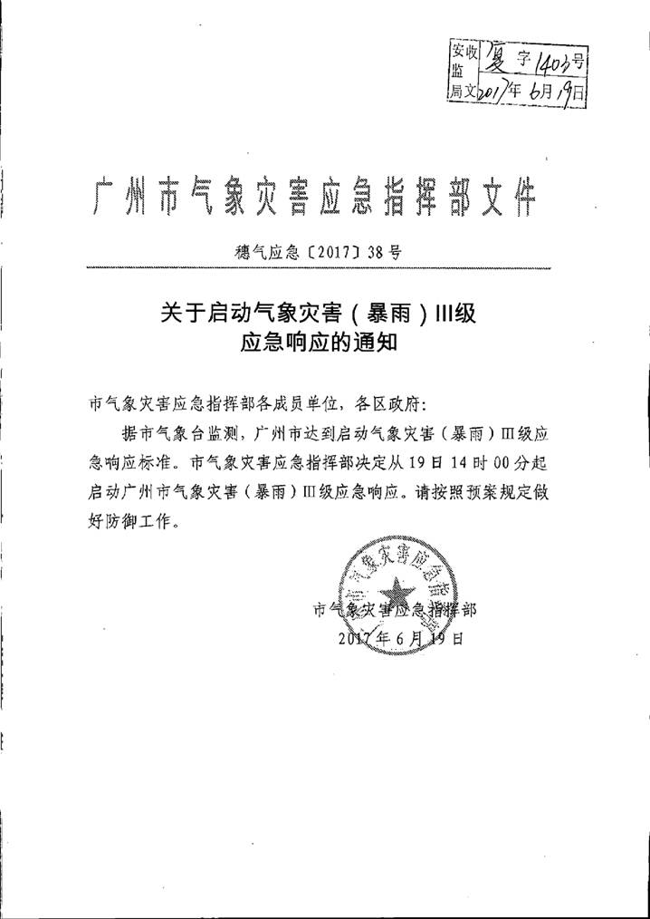 轉發關于啟動氣象災害(暴雨)Ⅲ級應急響應的通知