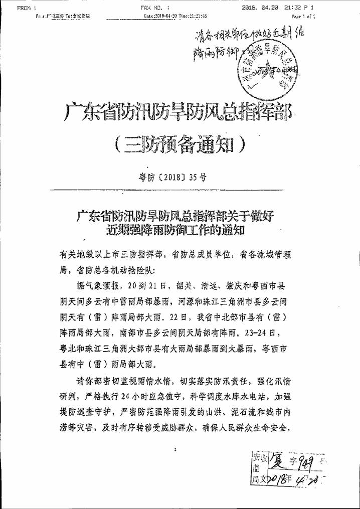 轉(zhuǎn)發(fā)廣東省防汛防旱防風(fēng)總指揮部關(guān)于做好近期強(qiáng)降雨防御工作的通知,請(qǐng)各單位做好防御