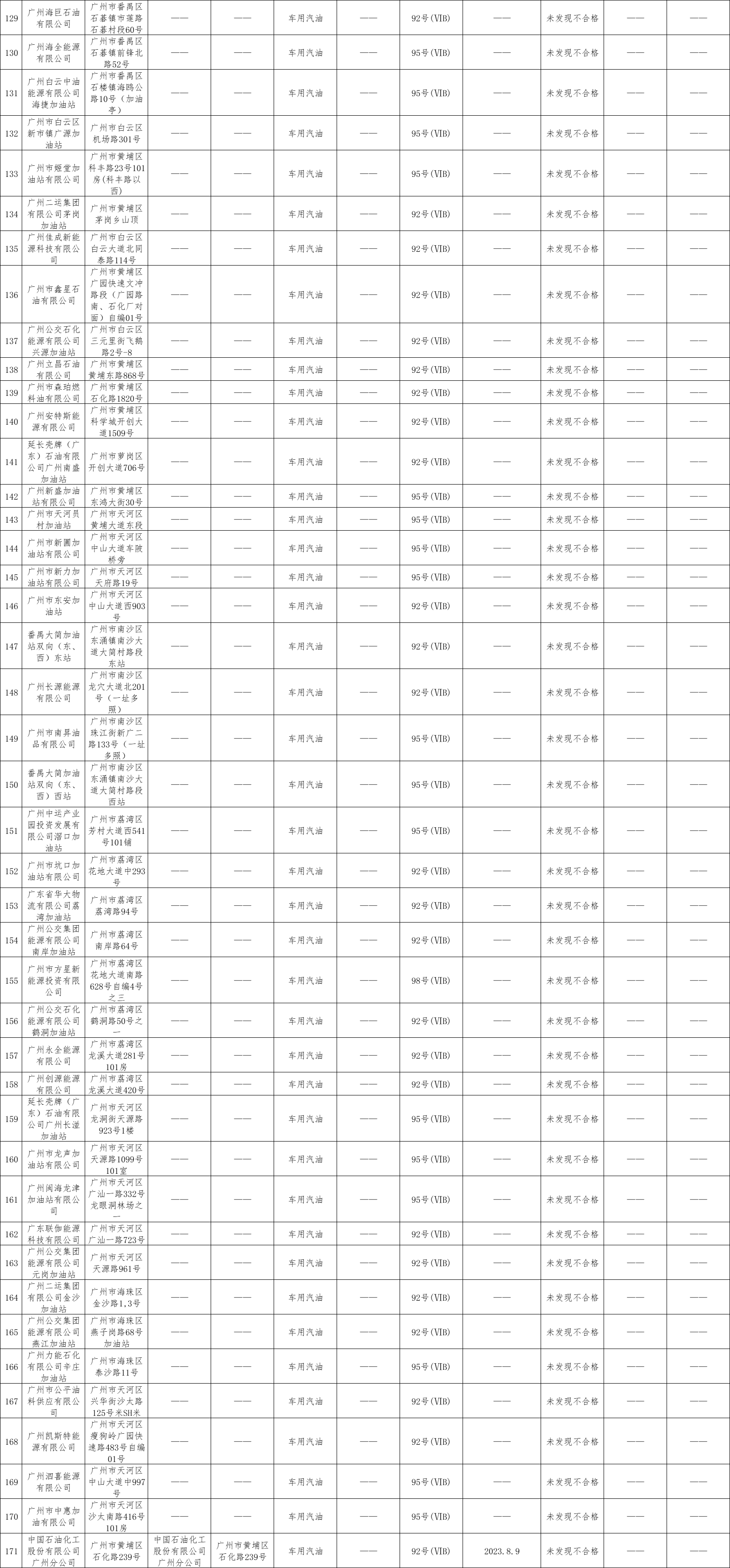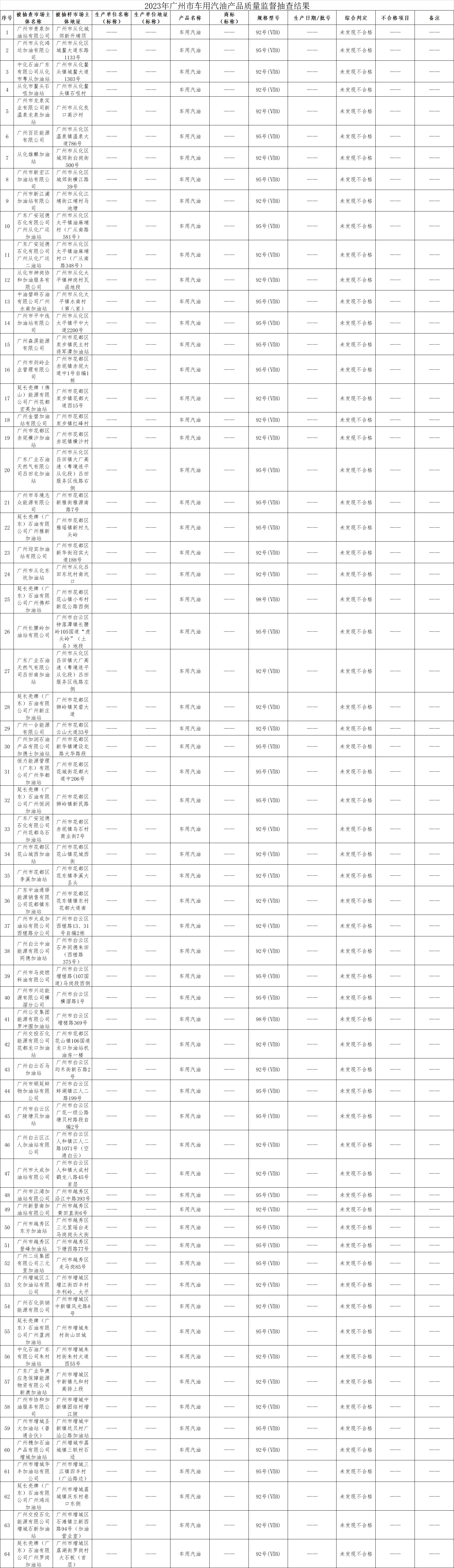 2023年第三季度廣州市車(chē)用汽油產(chǎn)品質(zhì)量監(jiān)督抽查結(jié)果3