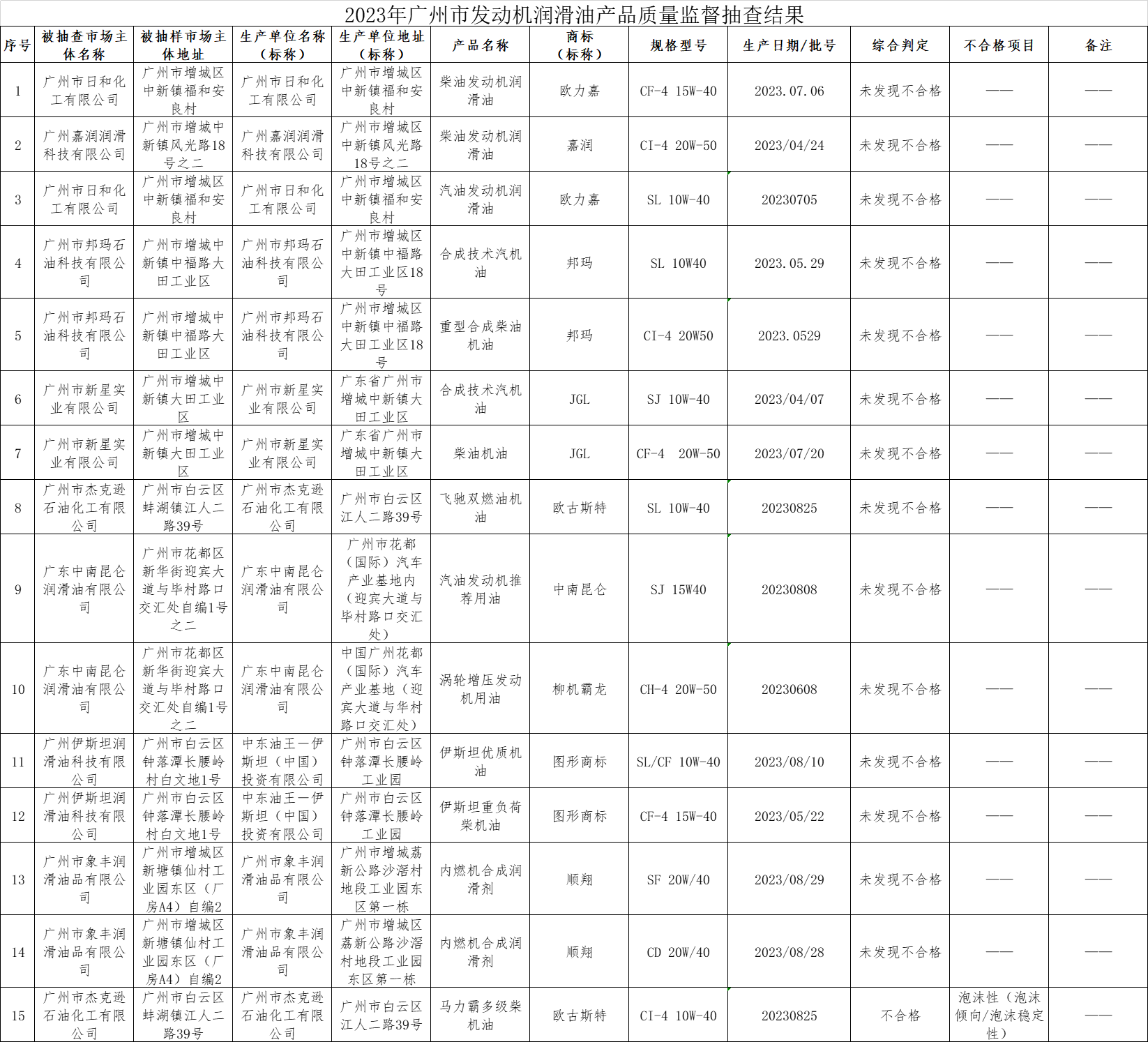 附件:2023年第三季度廣州市發(fā)動機潤滑油質(zhì)量監(jiān)督抽查結(jié)果