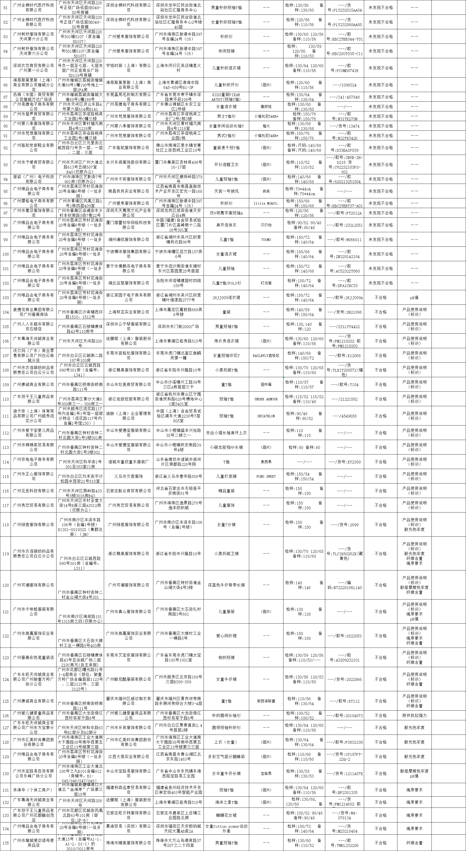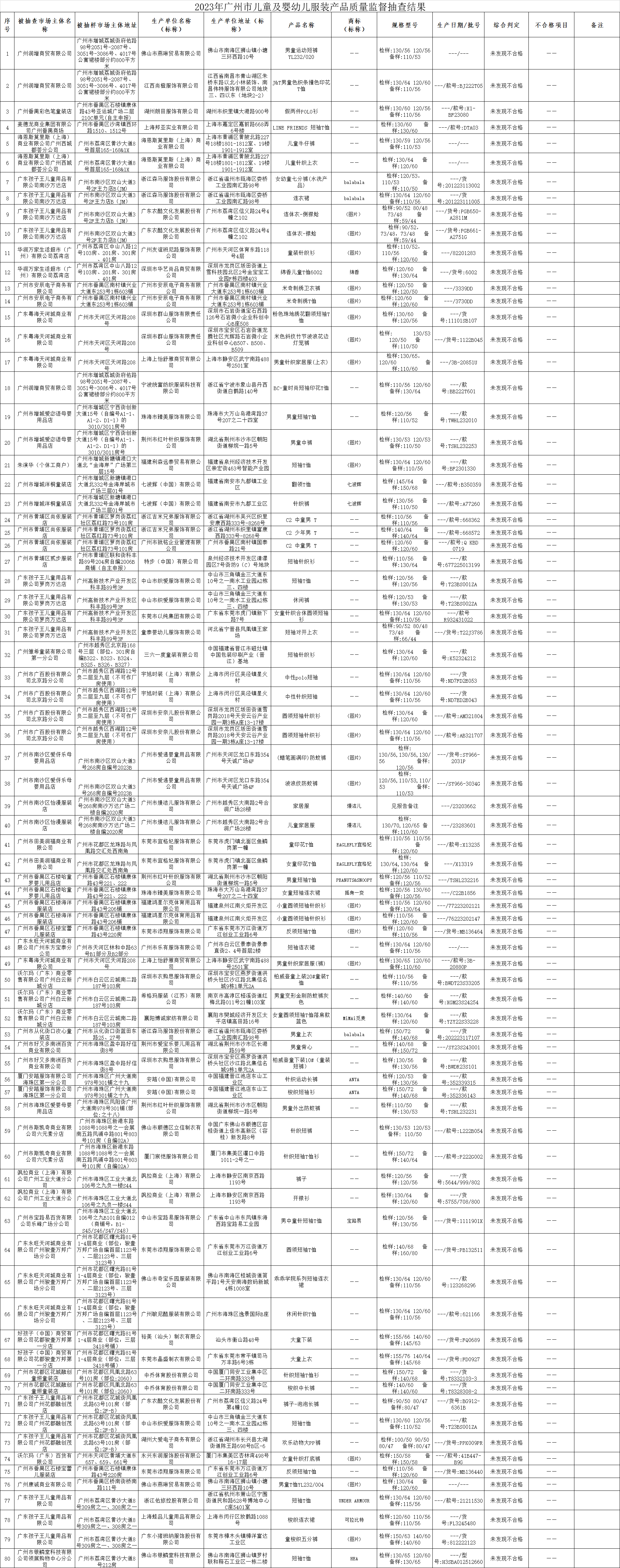 附件:2023年廣州市兒童及嬰幼兒服裝產品質量監督抽查結果1