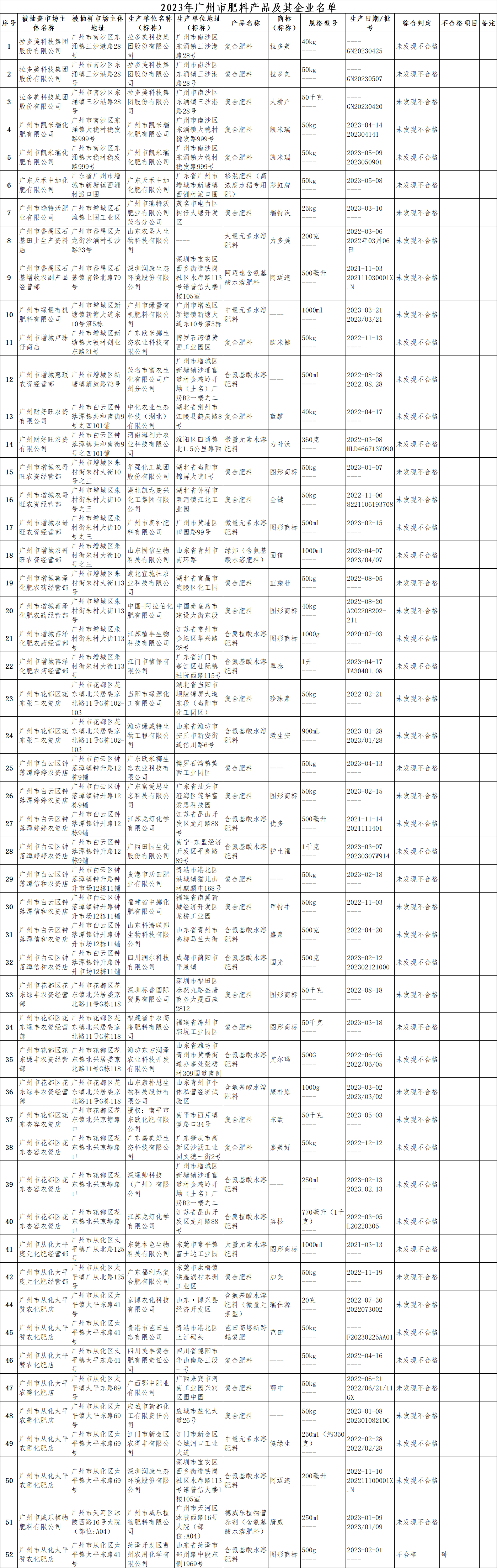 附件:2023年廣州市肥料產(chǎn)品質(zhì)量監(jiān)督抽查結(jié)果