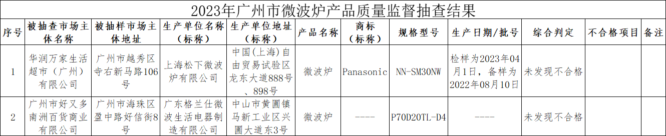 2023年第三季度,廣州市市場監督管理局對微波爐產品質量進行了監督抽查,共抽查了2批次樣品,經檢驗,未發現不合格。
