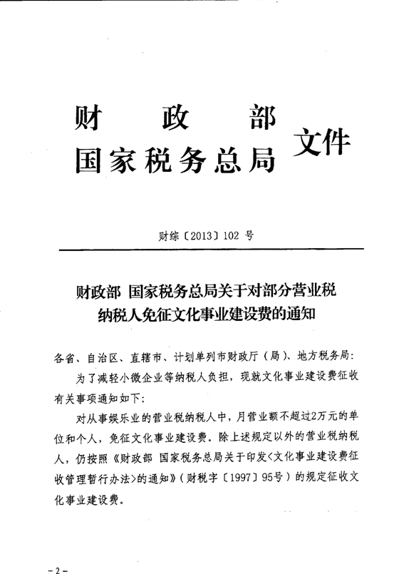 轉(zhuǎn)發(fā)財(cái)政部 國家稅務(wù)總局關(guān)于對部分營業(yè)稅納稅人免征文化事業(yè)建設(shè)費(fèi)的通知----粵財(cái)綜〔2014〕7號