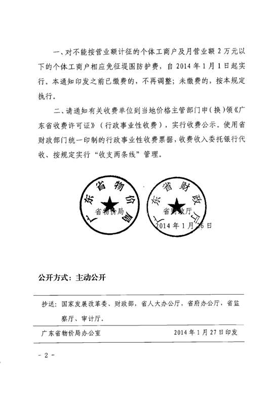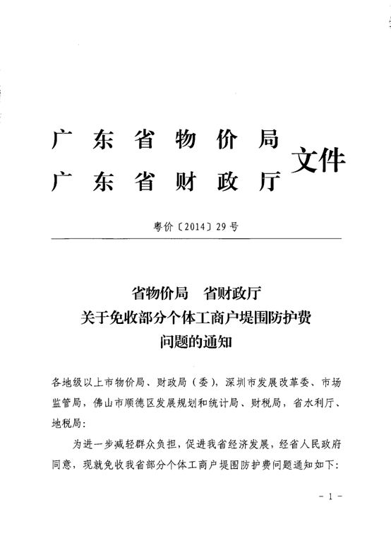 省物價局 省財政廳關于免收個體工商戶堤圍防護費問題的通知----粵價〔2014〕29號