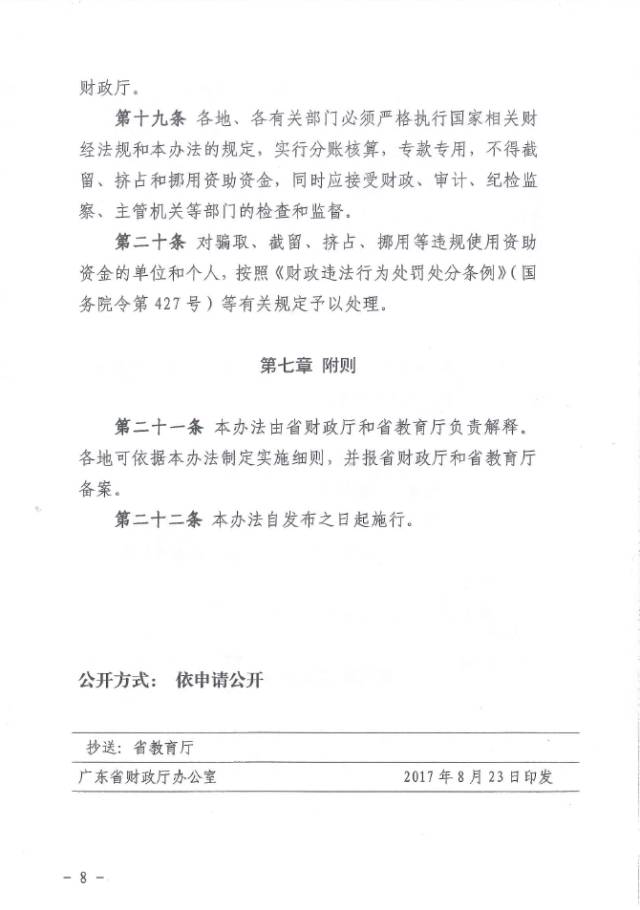 關(guān)于印發(fā)《廣東省義務(wù)教育學生生活費補助資金管理方法》的通知