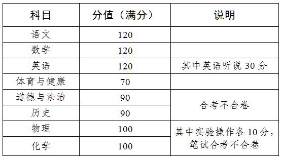 各學(xué)科考試結(jié)合學(xué)科特點,以筆試為主。語文、數(shù)學(xué)、道德與法治、歷史和地理5個科目實行閉卷筆試;英語實行閉卷筆試和聽說能力考試;物理、化學(xué)、生物3個科目實行閉卷筆試和實驗操作考試,其中實驗操作成績不低于每門科目考試總成績的10%,積極探索應(yīng)用計算機進行理化生實驗操作考試;信息技術(shù)、音樂和美術(shù)3個科目實行現(xiàn)場操作考試;體育與健康考試分為體育素質(zhì)綜合評價和統(tǒng)一考試,體育素質(zhì)綜合評價由各學(xué)校自行組織實施,統(tǒng)一考試具體方案由市另行制定。
