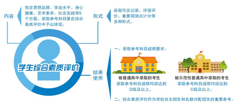 一是錄取參考科目成績采用等級呈現,克服唯分數頑瘴痼疾。二是物理、化學、生物、體育與健康均注重對學生實操能力和平時表現的考核。三是將學生綜合素質評價作為名額分配、自主招生的重要參考。這些改革舉措將引導學生發展興趣特長、培養創新思維,促進學生全面而有個性地發展,避免人才選拔標準“一刀切”。
