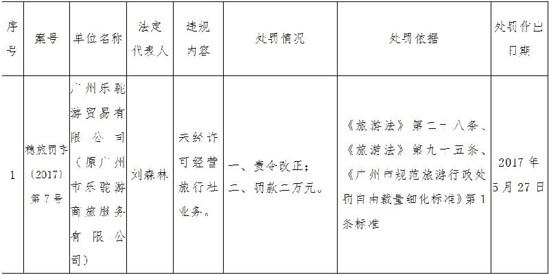 按照《旅游法》,以下單位因違法經(jīng)營(yíng)受到行政處罰,有關(guān)事項(xiàng)公告如下: