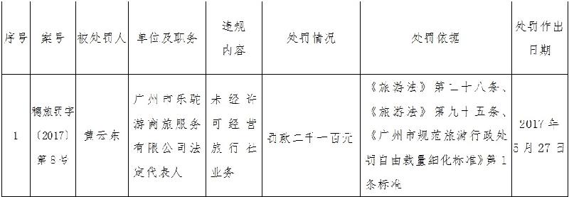 按照《旅游法》,以下單位因違法經營受到行政處罰,有關事項公告如下: