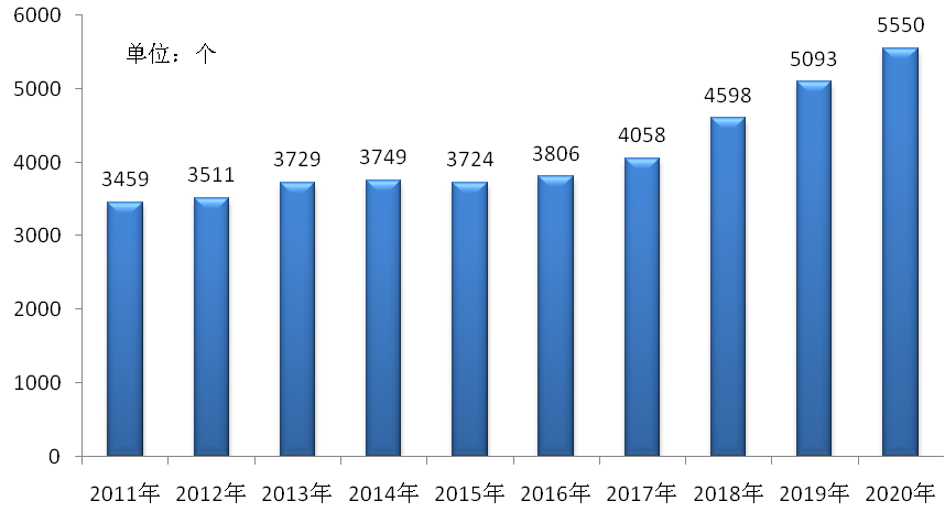 圖4 2011-2020年醫療衛生機構全市萬元以上設備臺數