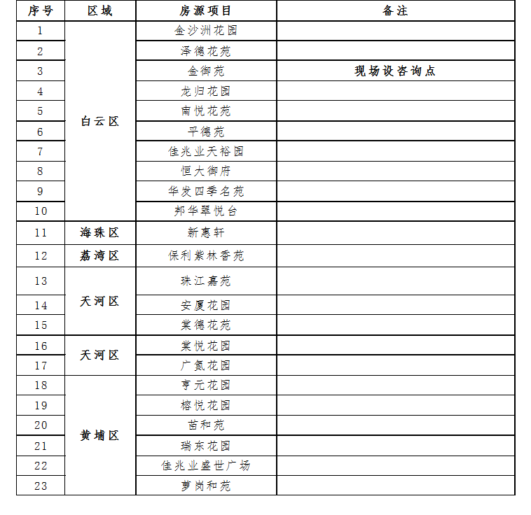 房源開放日期間,廣州市住房保障辦公室、廣州珠江住房租賃發展投資有限公司、廣州城投住房租賃發展投資有限公司在白云區金御苑設現場咨詢點,咨詢時間為:上午9:00~12:00,下午13:00~16:00。