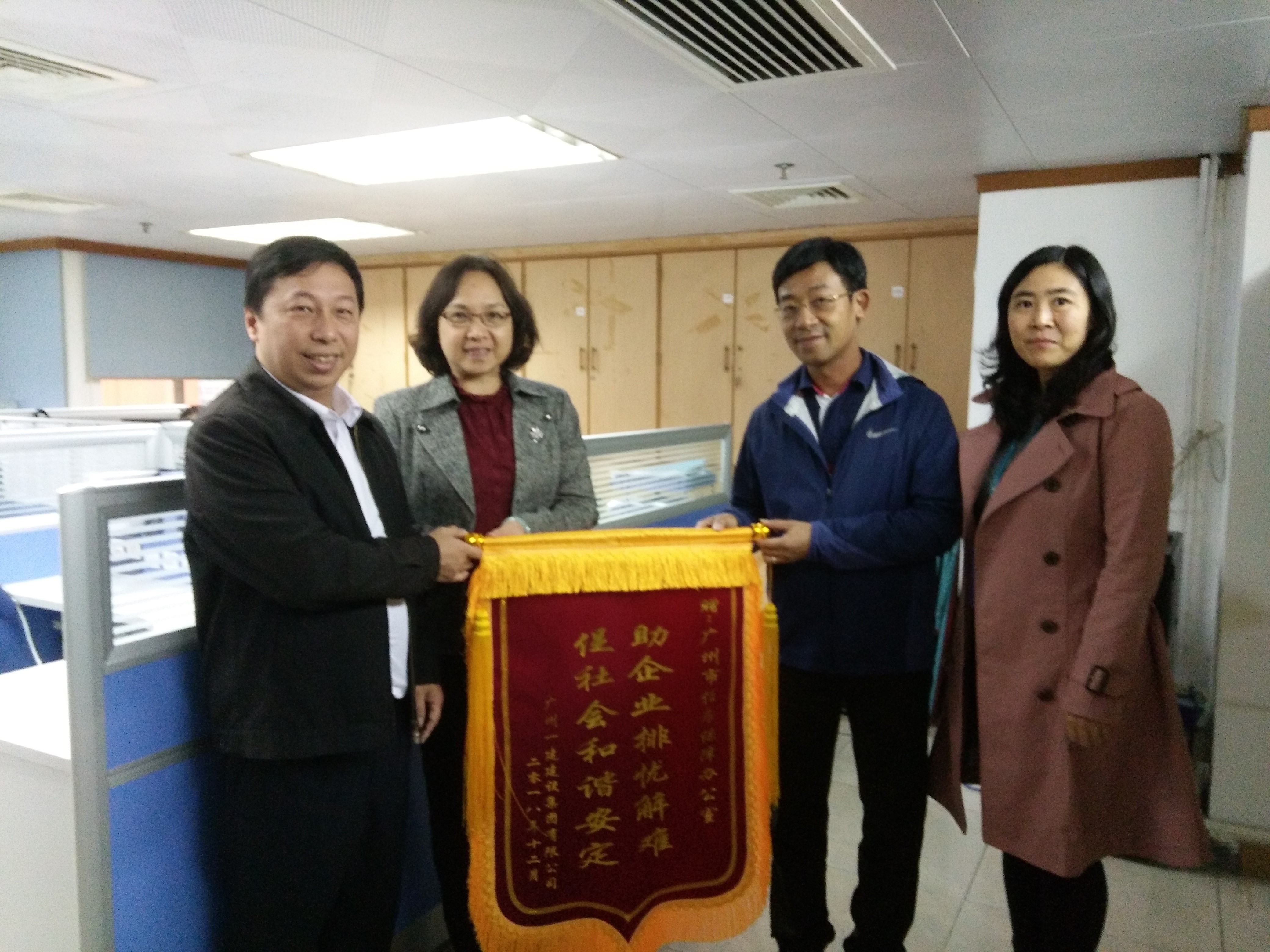 12月25日下午,廣州一建建設集團有限公司總經理親自帶領業務經理、經辦同志為市住房保障辦送來“助企業排憂解難,促社會和諧安定”的錦旗。去年初至今年9月間,廣州一建建設集團有限公司在推進單位住房貨幣分配過程中急需對單位一千多名職工家庭的住房情況進行核查。市住房保障辦審核分配處、房改指導處的工作人員急單位所急,加班加點完成了全部查核工作,并對個別情況特殊的職工享受保障房情況再作細致復核,同時在政策解釋、工作方法、工作程序等方面為企業提供了極大的幫助,該企業近日順利完成了住房貨幣分配工作。