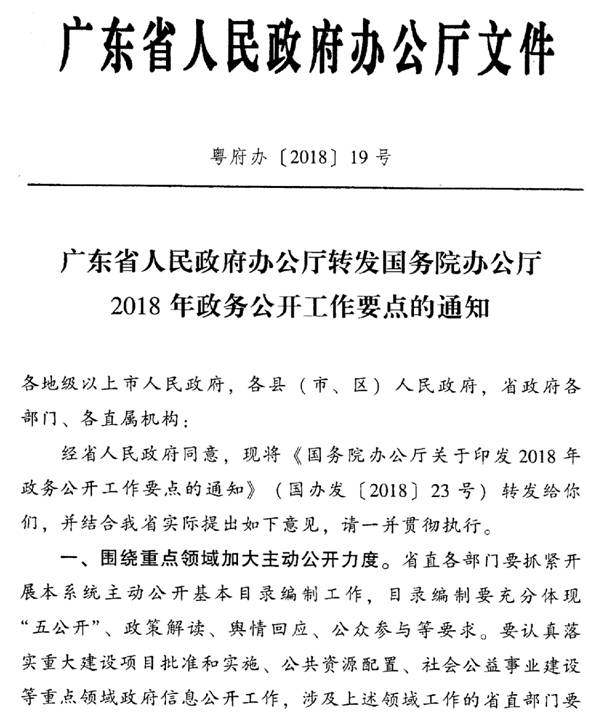 附件:廣東省人民政府辦公廳轉發國務院辦公廳2018年政務公開工作要點的通知(粵府辦〔2018〕19號)